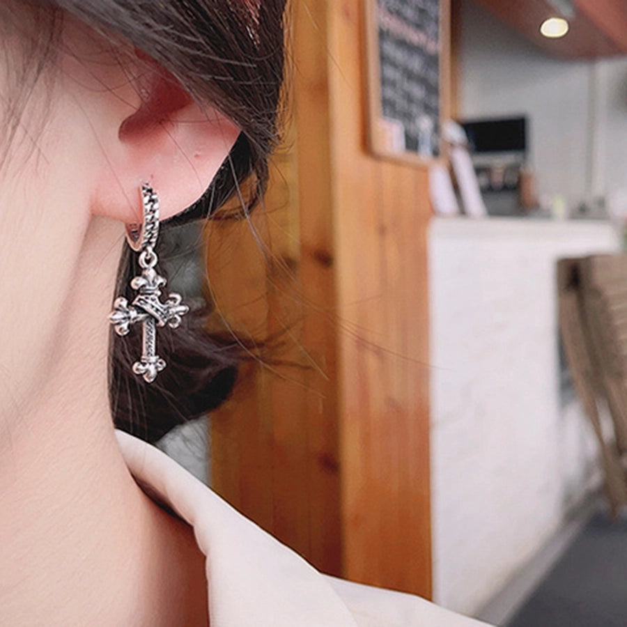 Silver Cross Drop Earrings